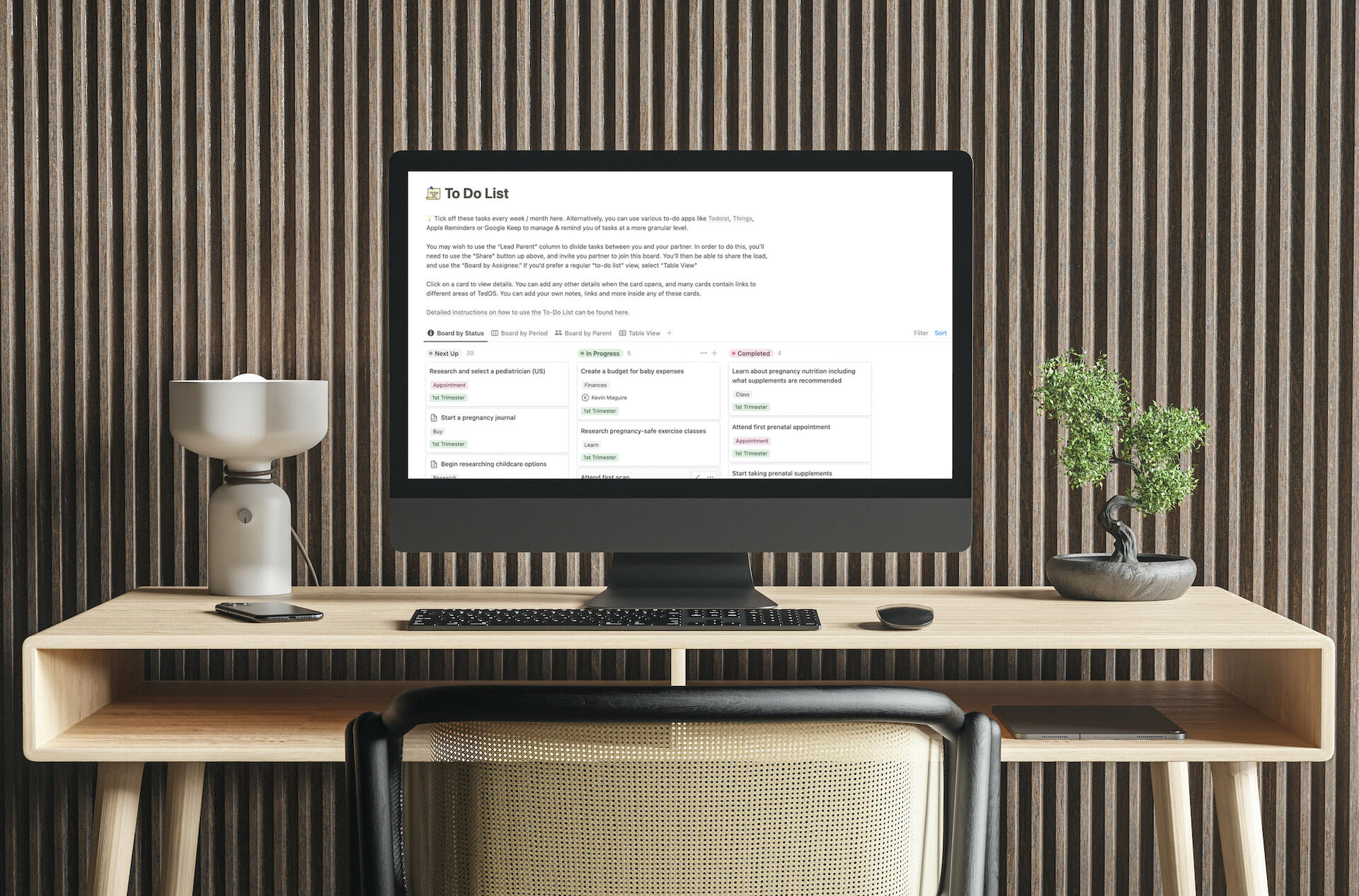 A master pregnancy to-do list (with progress tracking) to help you plan, prep and get ready—plus fully editable to add your own tasks and notes.